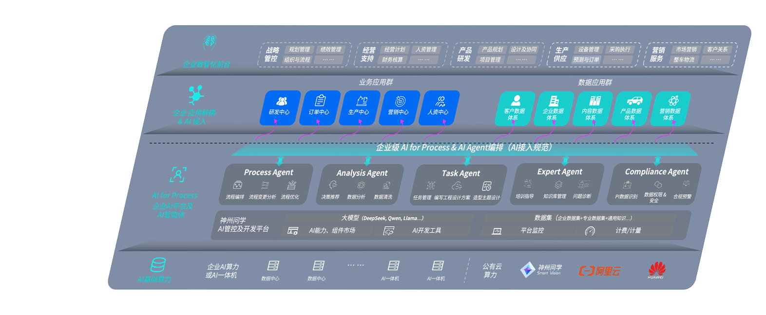 GALAXY银河问学智车解决方案是一套基于AI技术的汽车行业智能化系统,,,覆盖从底层算力到顶层AI应用的全栈方案。。方案由算力层、、、、模型层和应用层组成:算力层,,方案支持多种一体机配置,,具备云端灵活部署、、、多云适配以及动态优化计算资源的能力;模型层,,,,GALAXY银河问学平台版提供了企业级AI应用一站式构建与管理平台,,支持基于后训练强化技术的汽车企业专属模型的训练、、、评测和运营;应用层,,,,GALAXY银河问学DeepSeek版提供包括超级员工、、智能招采、、、智能营销、、智能客服、、、、AI for BI等一系列解决方案,,,可助力汽车行业实现数字化转型,,,让管理更智能、、响应更敏捷。。。。